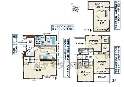 •  主寝室は勾配天井で開放感のある空間になっています。2面バルコニーでお洗濯物もたくさん干せます^^
