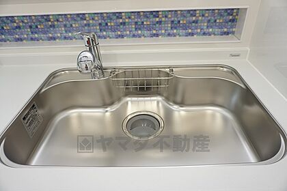 •  同仕様写真。広々とした凸型シンクに洗剤ポケットを標準装備。大きなお鍋など洗いやすいです。