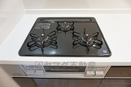 •  同仕様写真。複数の調理を一度に行うことができる3口コンロ。効率よくお料理が出来ます。毎日のお料理も楽しくなりますね^^