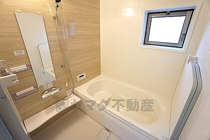•  同仕様写真。1日の疲れを癒すくつろぎのバスルーム。足を伸ばしてもゆったりと入れるサイズです。お子様と一緒にお風呂に入っても狭くないですね^^