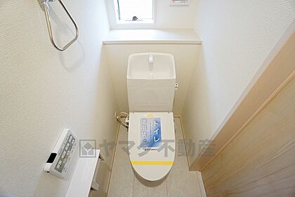 •  同仕様写真。温水、暖房、ウォシュレット付の高機能トイレです。もちろん各階にトイレがあるので、忙しい朝の混雑を避けることが出来ます。