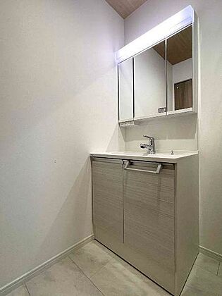 Panasonic洗面ドレッシング「C-Line(シーライン)」。マルチシングルレバーシャワー水栓で吐水部を左右に首振りできるので、洗顔や洗濯物を手洗いするときも、邪魔になりません。