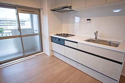 間取りは専有面積77.81平米の3LDK。LDK約12.3帖のプラン。複数方向に採光部があり、バルコニー面積は10.54平米です。