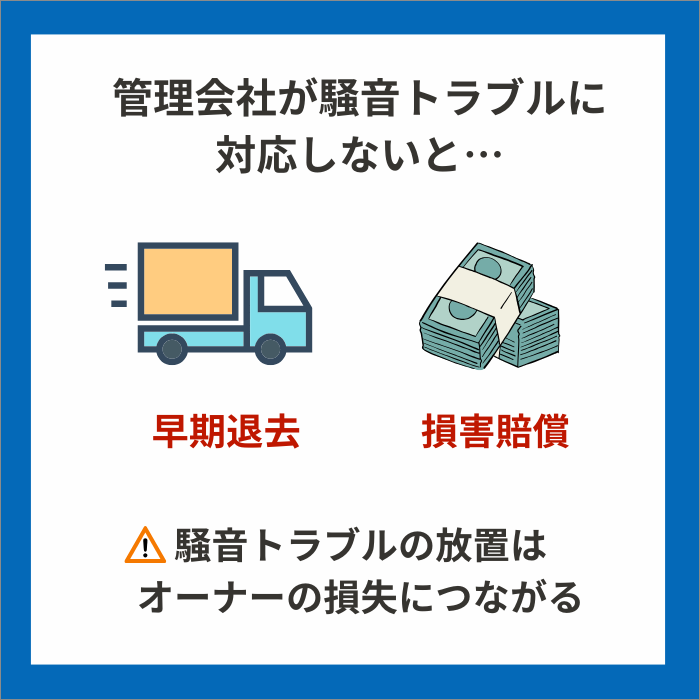このように、騒音トラブルの放置はオーナーの大きな損失につながることがあるため、早期解決が肝心です。