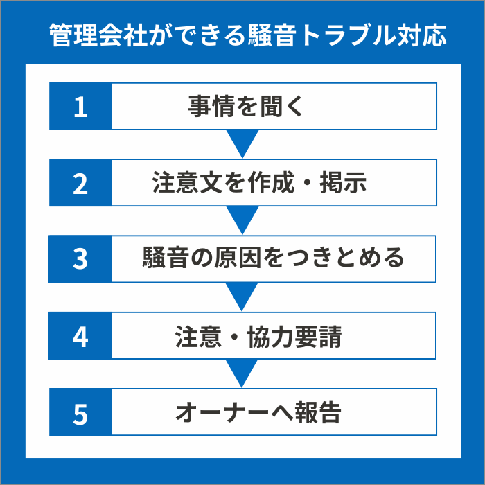 騒音トラブルは、本来であれば管理会社が前面に立って解決に当たるべき問題です。